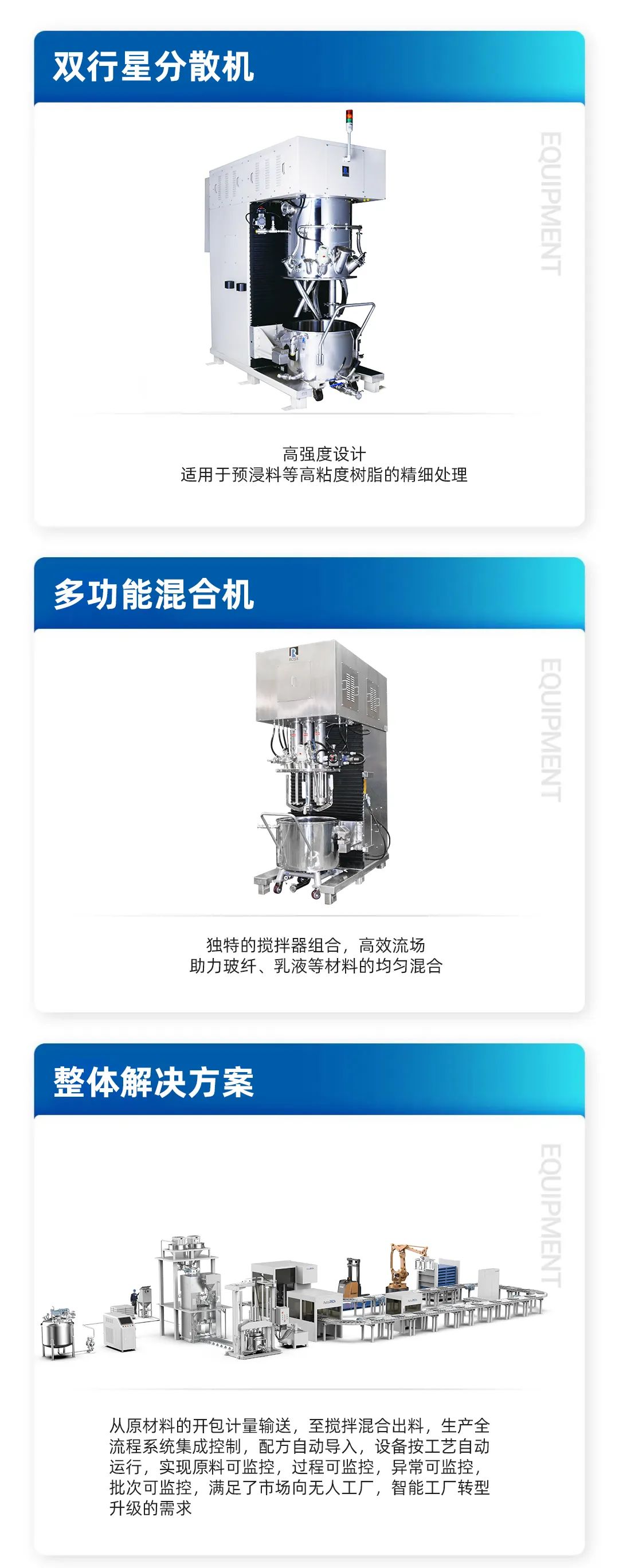 我司作为参展商之一,携带DPD双行星分散机,VMC多功能混合机等关键设备亮相展会。同时,作为智能制造的领军服务机构,理奇还为客户带去了复材行业生产的整体解决方案。